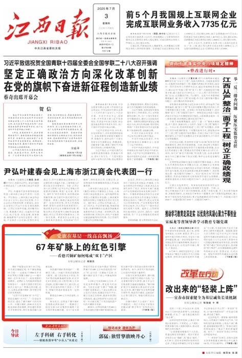“这里不但是铜矿的‘丰产区’,,,,,,,更是党建的‘丰产区’。。。。。。”一位老党员的话语,,,,,,,道出了德兴铜矿人的配合心声。。。。。。在德兴铜矿,,,,,,,2100余名党员就是2100多面旌旗,,,,,,,将党建优势转化为生长优势,,,,,,,将红色基因融入立异血脉。。。。。。